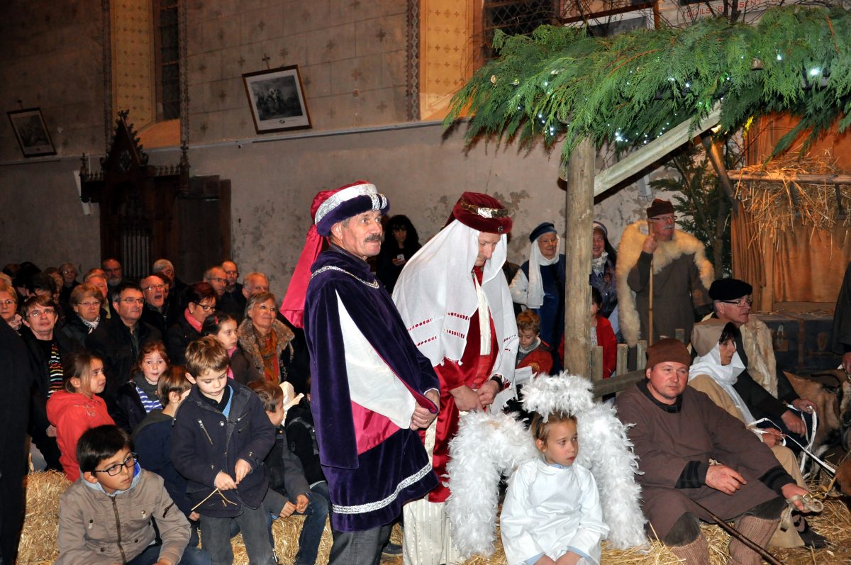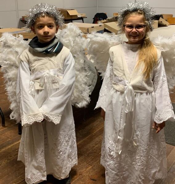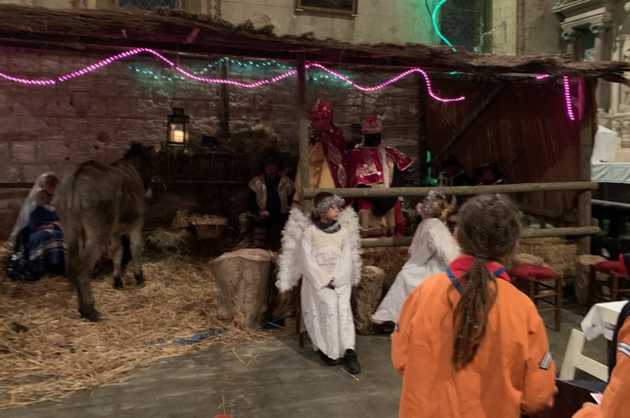 Sous barnum à coté de l'église : Vin chaud, chocolat, potage sont offert par l'Association. Partage du pain béni.
