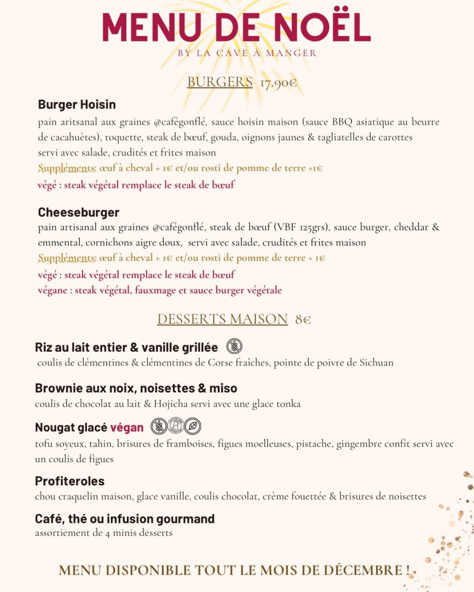 Menu disponible tout le mois de décembre.