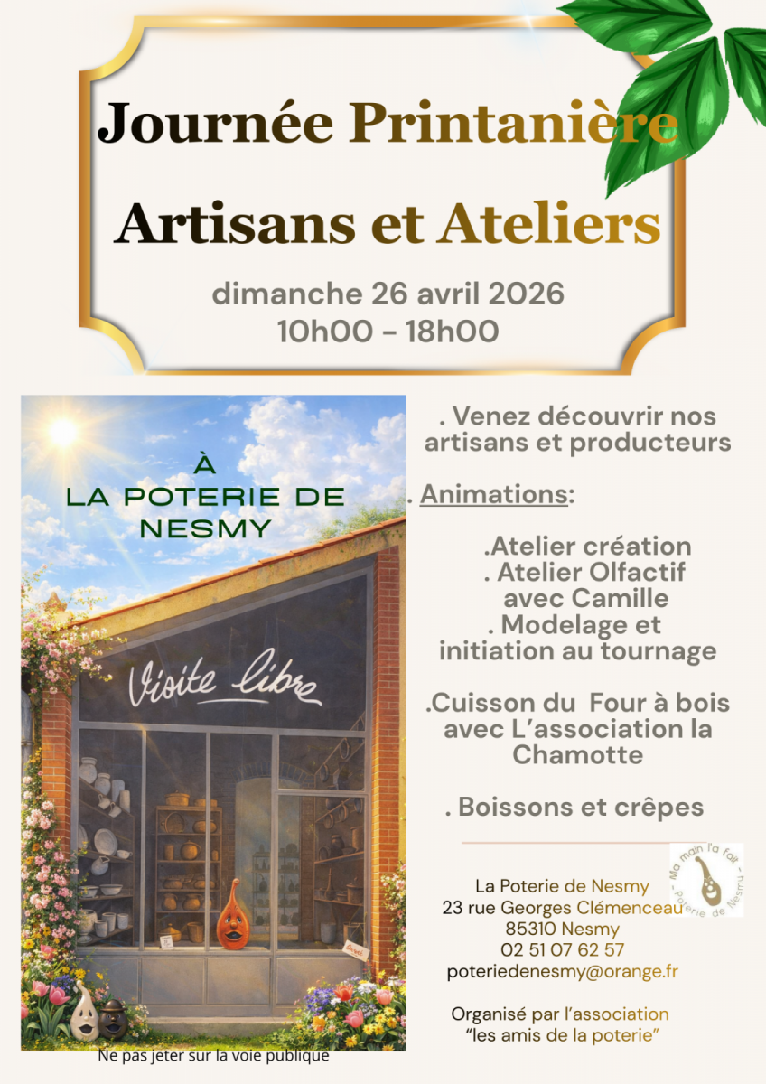 Dans le cadre de la Journée Printanière Artisans et Ateliers, la Vieille Poterie de Nesmy vous propose de découvrir un lieu chargé d’histoire depuis 1857.
