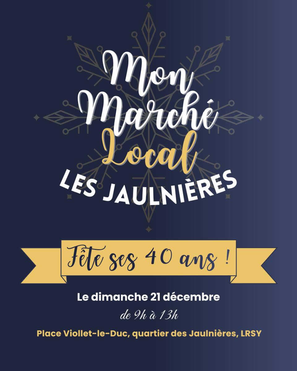 Le marché des Jaulnières fête ses 40 ans le dimanche 21 décembre matin, place Viollet le Duc. En plus du traditionnel marché alimentaire, les conseillers citoyens et commerçants vous ont préparé quelques surprises...