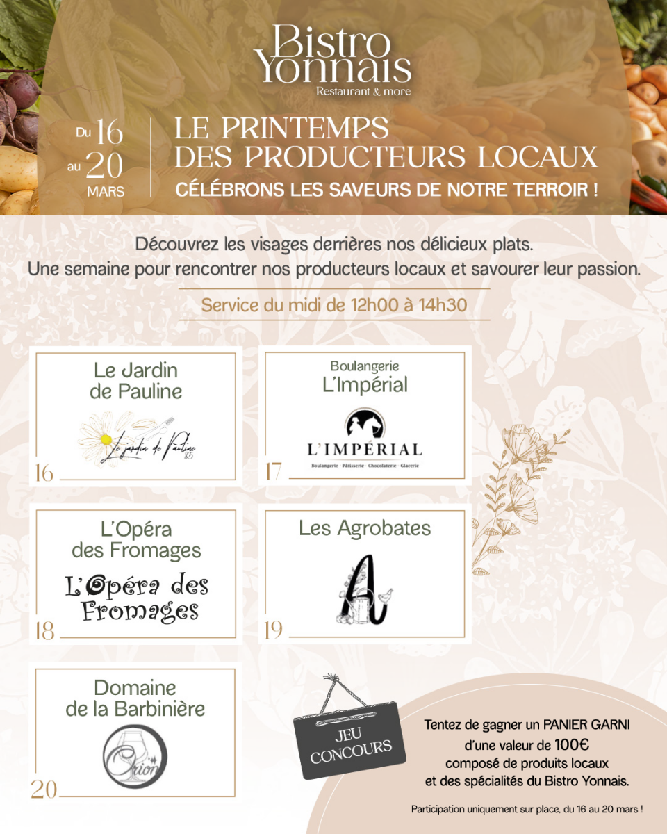 Le Printemps des Producteurs Locaux au Bistro Yonnais à La Roche-sur-Yon