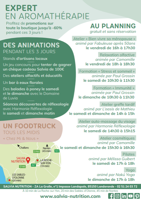 Découvrez le planning complet des animations en photo et sur le site internet : www.salvia-nutrition.com