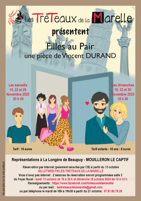 Les Tréteaux de la Marelle vous invitent à découvrir une nouvelle pièce de théâtre « Filles au pair » de Vincent Durand.