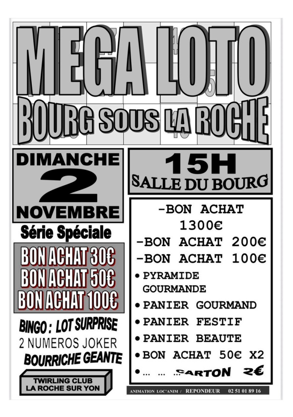 MEGA LOTO organisé par le Twirling club de La Roche-sur-Yon