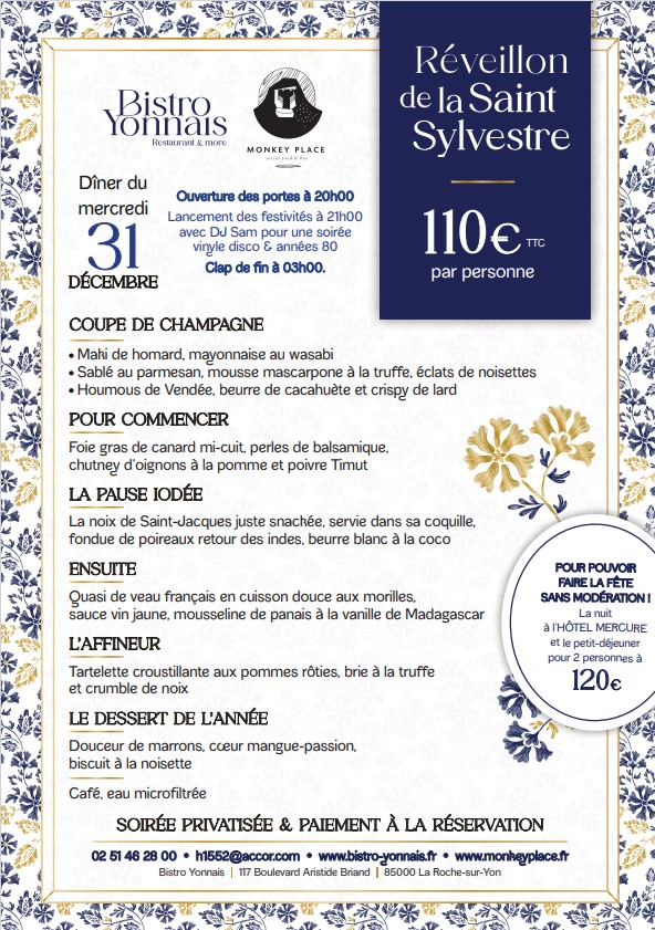 Réveillon de la Saint Sylvestre au Bistro Yonnais & au Monkey Place