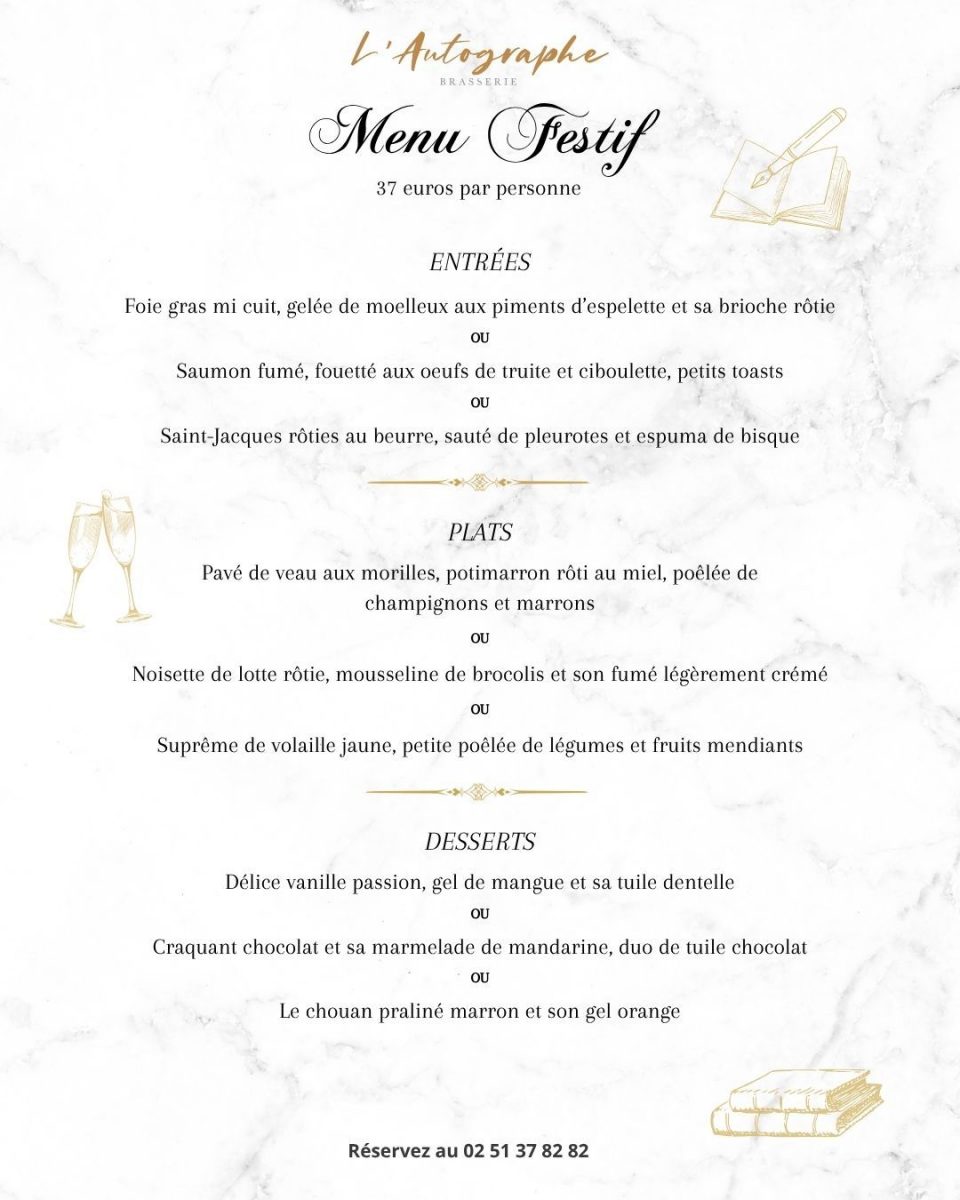 📍 Réservez par téléphone au 02 51 37 82 82 ou par mail : contact@lautographe-brasserie.fr et célébrez les fêtes à l’Autographe ! ✨