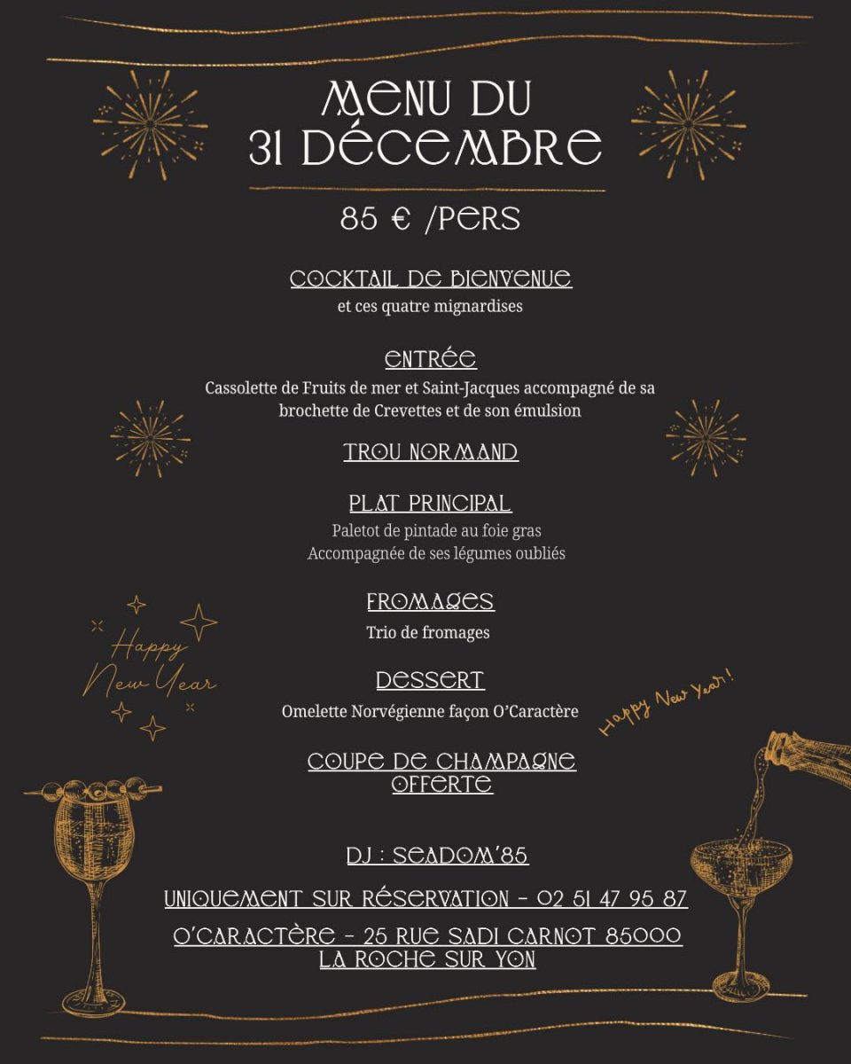 Venez dîner et fêter le nouvel an au O'Caractere !