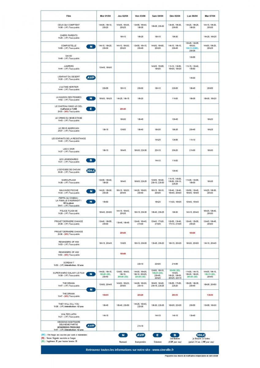 | Du 01 avril au 07 avril | |