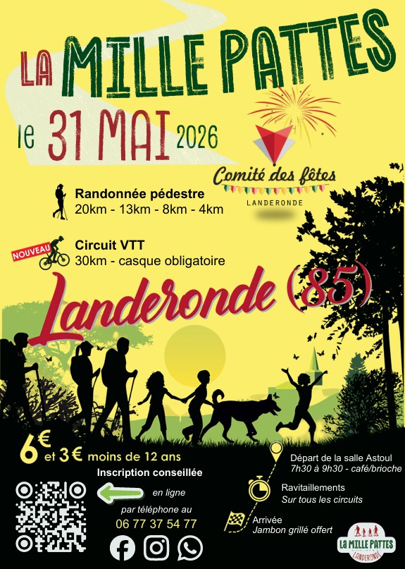 L’inscription n’est pas obligatoire mais vivement conseillée, elle peut se faire par téléphone au 06 77 37 54 77 ou sur le site internet (https://mille-pattes-2026.fr/)