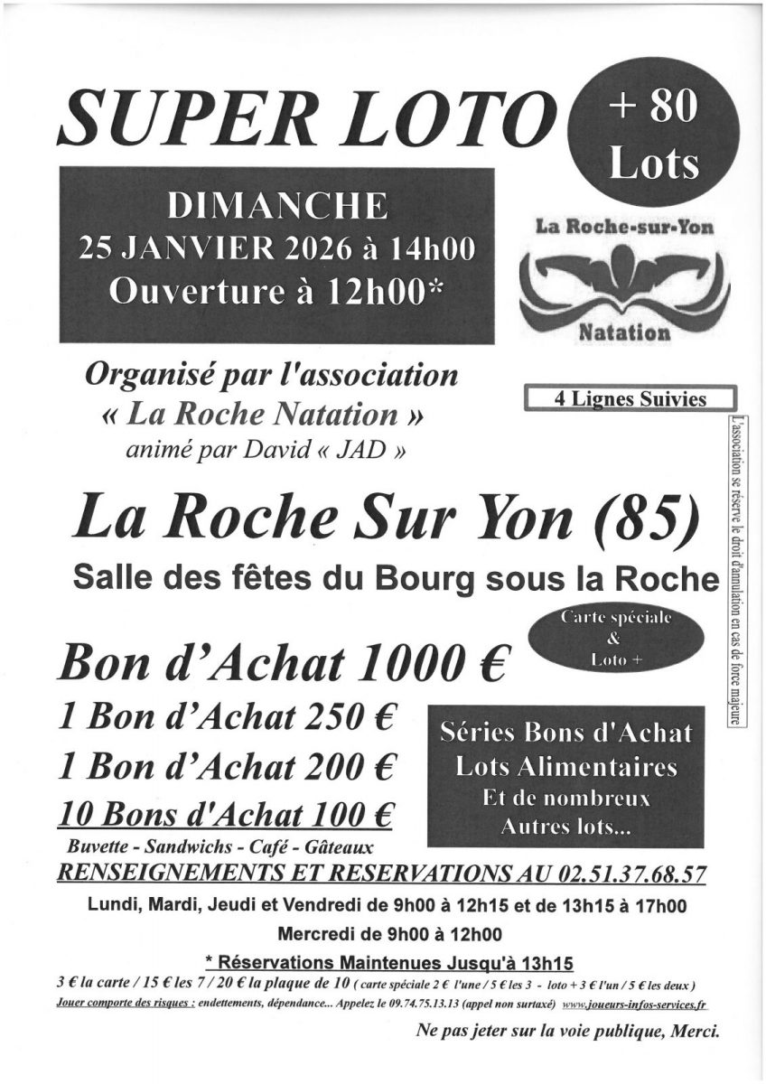 Super Loto organisé par la La Roche Sur Yon Natation et animé par David JAD.