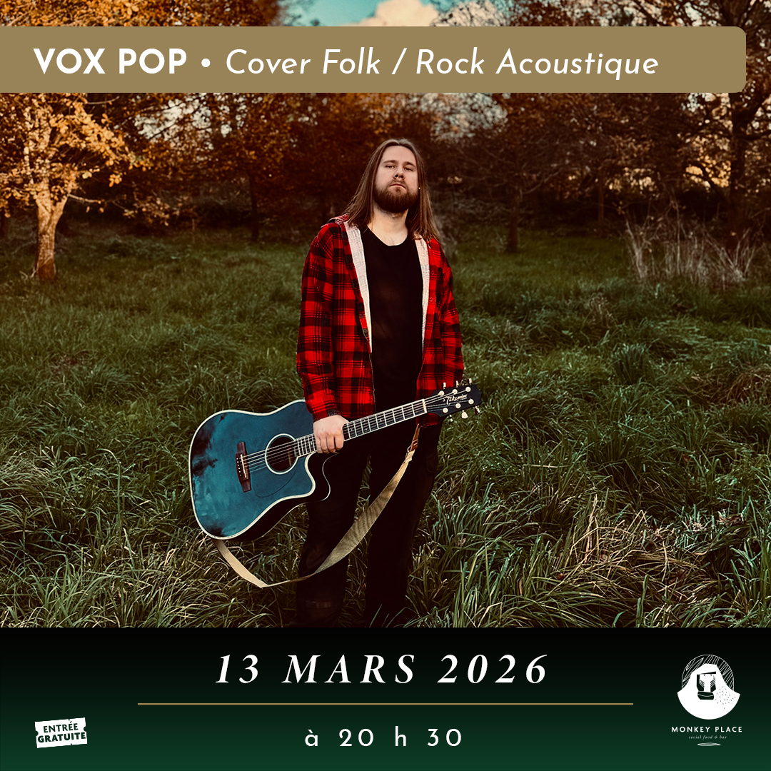 Rendez-vous avec Vox Pop le Vendredi 13 Mars à 20h30 pour une soirée Cover Folk et Rock Acoustique à La Roche-sur-Yon.