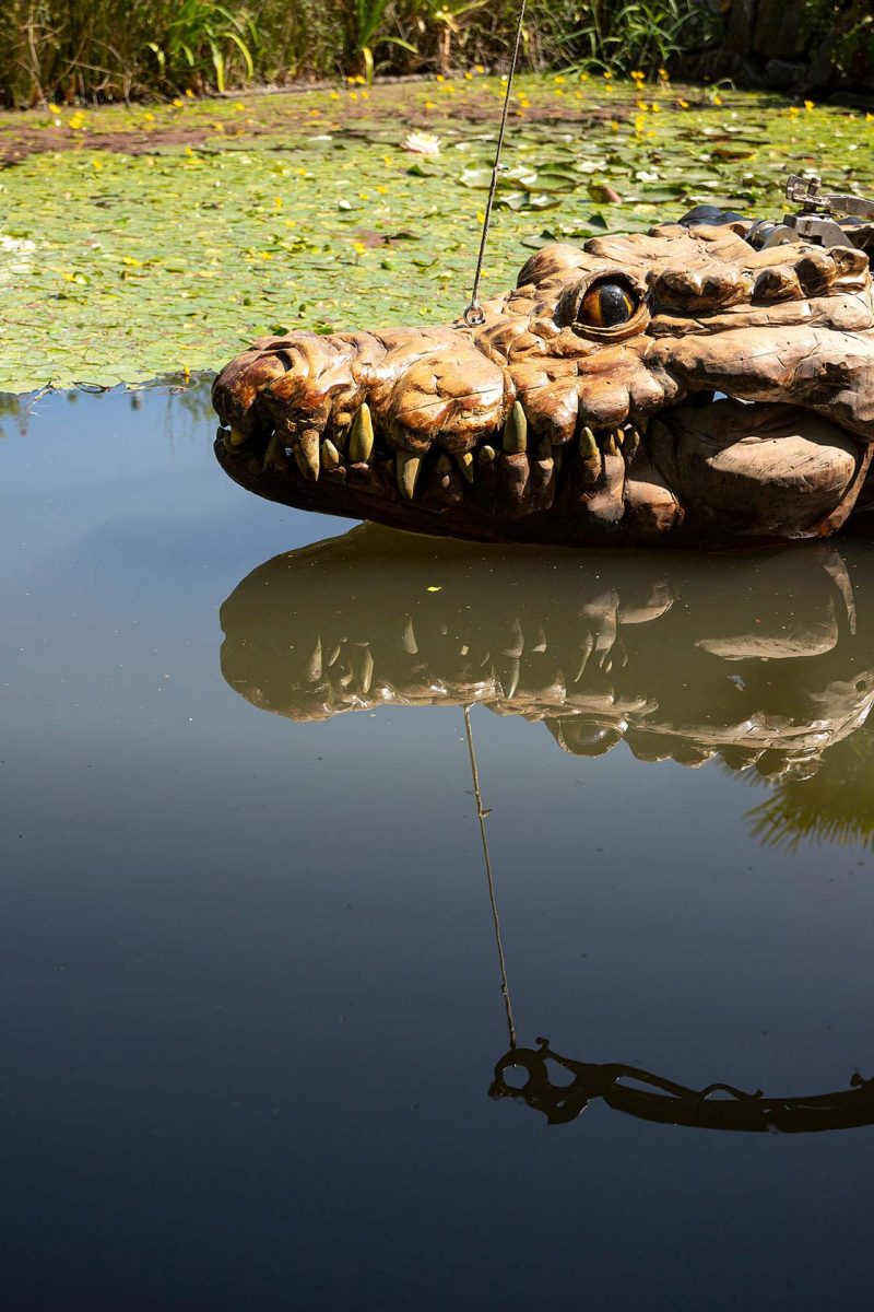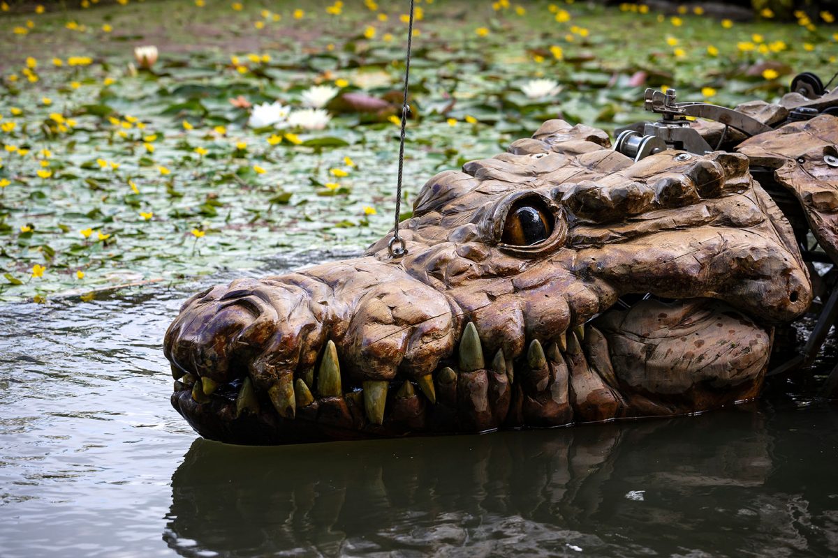 Cet animal gigantesque d’une longueur de 8,70m, impressionne quand il ouvre sa large gueule. En effet, ses 40 dents ont de quoi donner des frissons ! C’est le spectacle « le premier coup de pelleteuse », en septembre 2012, qui le met en lumière. Le crocodile avance jusqu’à la rive, bouge la queue ainsi que la tête et ouvre la gueule.