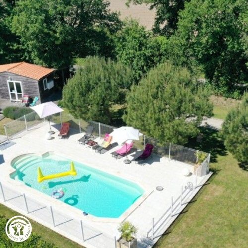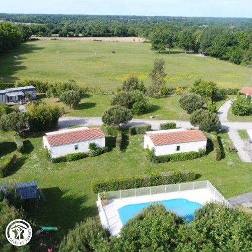 L'hébergement se compose d'un séjour/salon/cuisine, de deux chambres (1 lit 140) (2lits 80 jumelables) avec chacune une salle d'eau/WC privatifs. Wifi. A l'extérieur, terrasse privative et terrain privatif de 250m². En commun sur le domaine de 5 ha : piscine chauffée ouverte du 1er juin au 31 octobre 2023, barbecues à disposition, jeux enfants, table de ping-pong, terrain de pétanque, vélos, laverie (lave-linge, sèche-linge) payante à jetons. Pré clôturé avec chevaux et ânes.
