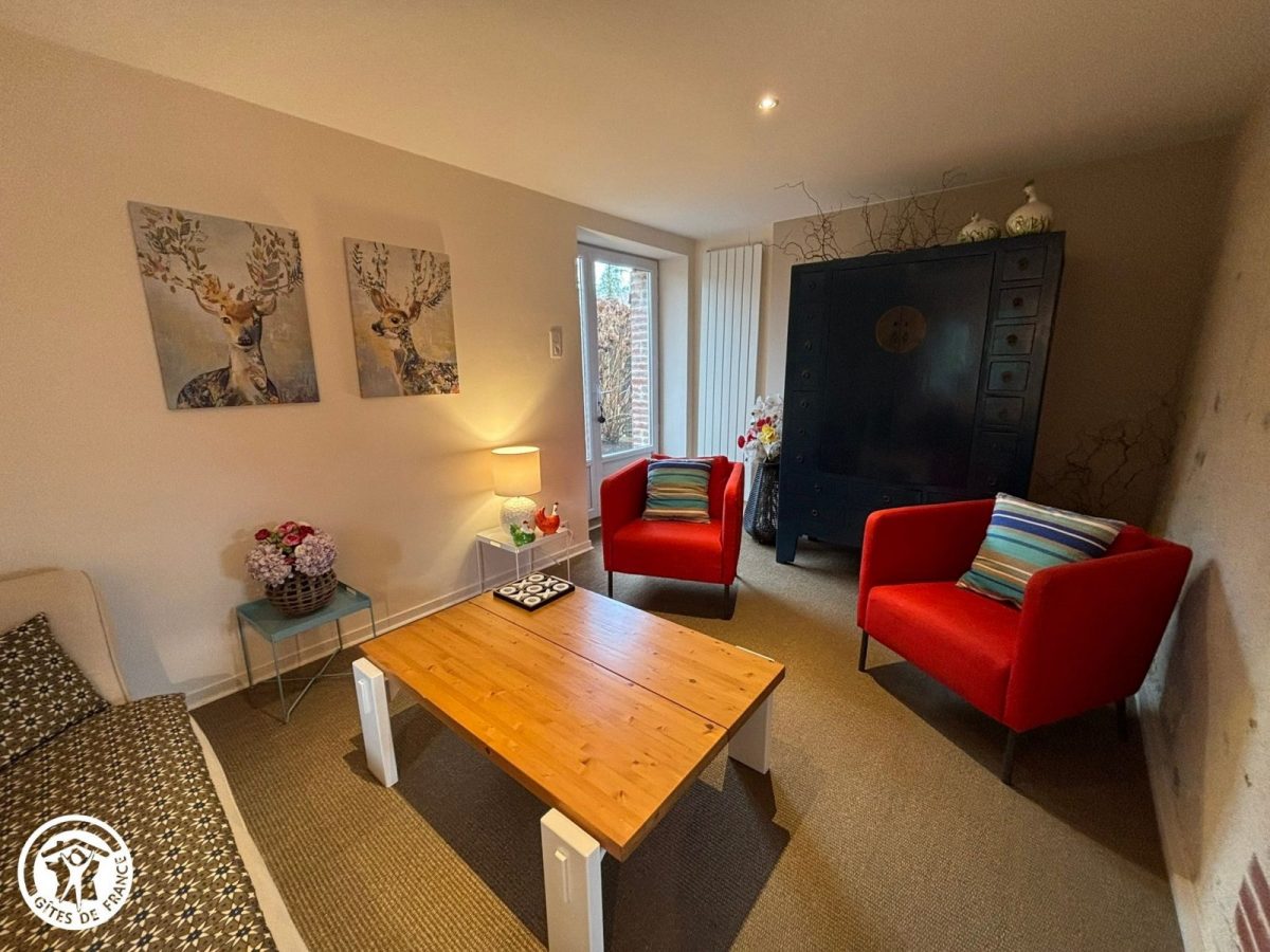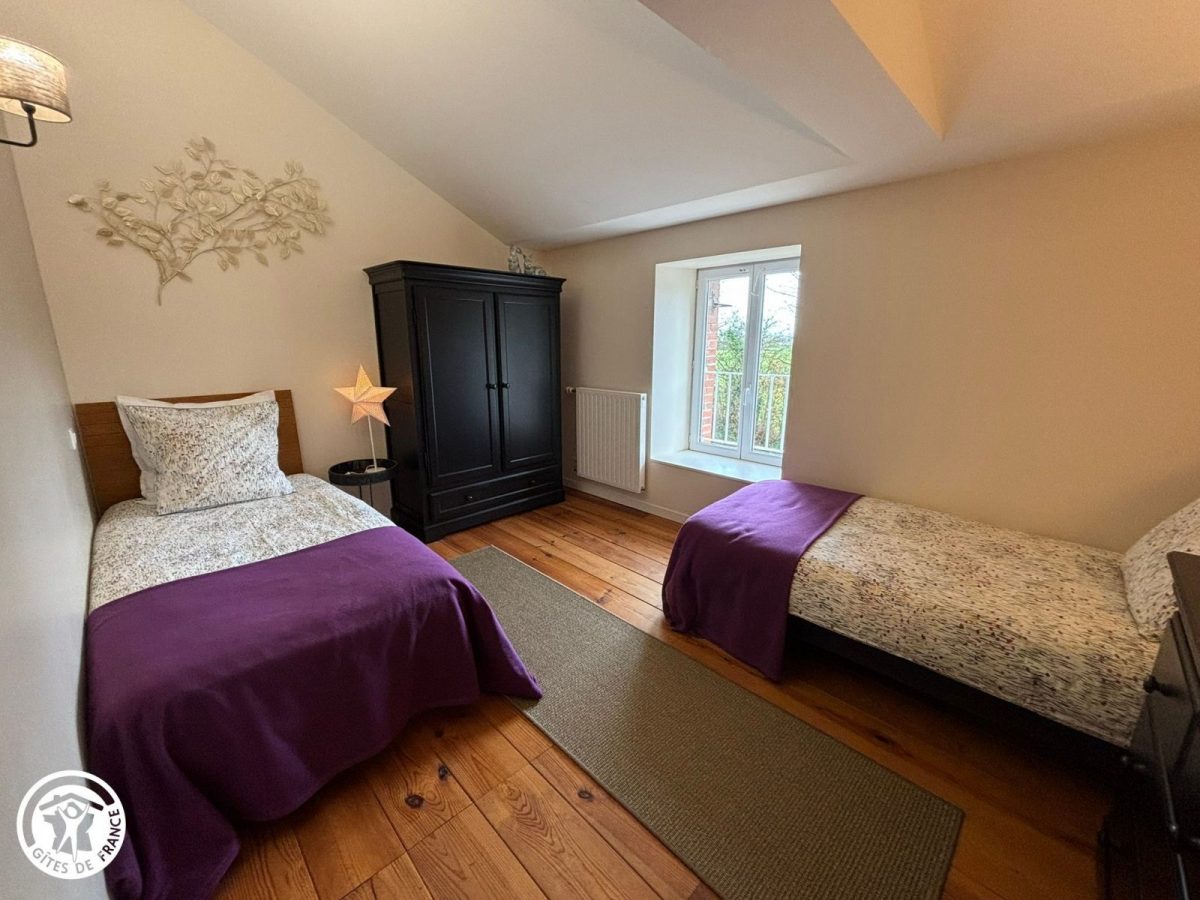 Ce gîte aménagé dans une ancienne bâtisse, vous offre, au rez-de-chaussée, un séjour/salon/cuisine, un salon avec TV, une salle d'eau et un WC. A l'étage, vous trouverez deux chambres dont une équipée d'un lit 160 et une équipée de deux lits 90, ainsi qu'un WC. Vous bénéficierez d'un espace privatif aménagé de 500 m² avec terrasse (salon de jardin, barbecue) et jeux extérieurs. Vous pourrez stationner votre véhicule sur place et disposerez d'une prise pour la recharge des voitures électriques (en supplément).