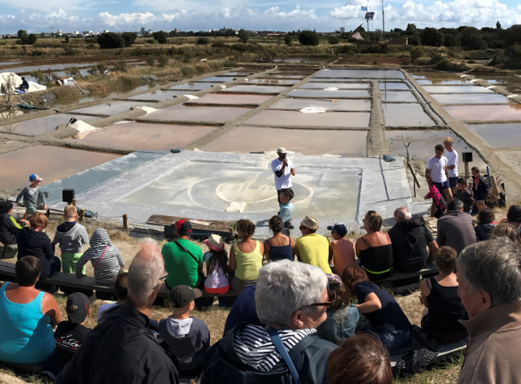 Après la balade en bateau, au cœur du marais, vous pourrez apprécier la rencontre avec le saunier, heureux de dévoiler les secrets de son métier et les richesses de ce patrimoine. Puis, ce sera au tour des enfants de s’essayer à ce métier de soleil et de vent. Ils récolteront le sel de leurs vacances, sous les regards amusés et fiers de leurs parents. 😄