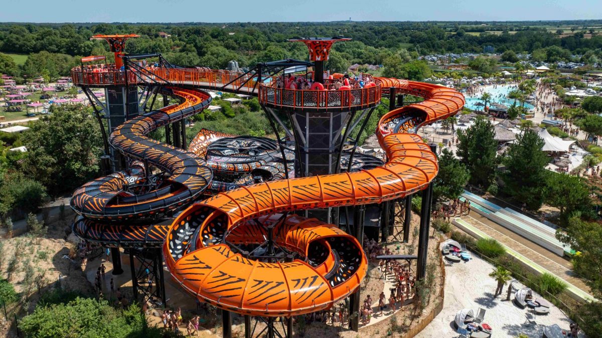 16 toboggans, un lagon avec cascade, une piscine à vagues, 400 mètres de rivières sauvages, des espaces privatisées avec jacuzzi, …